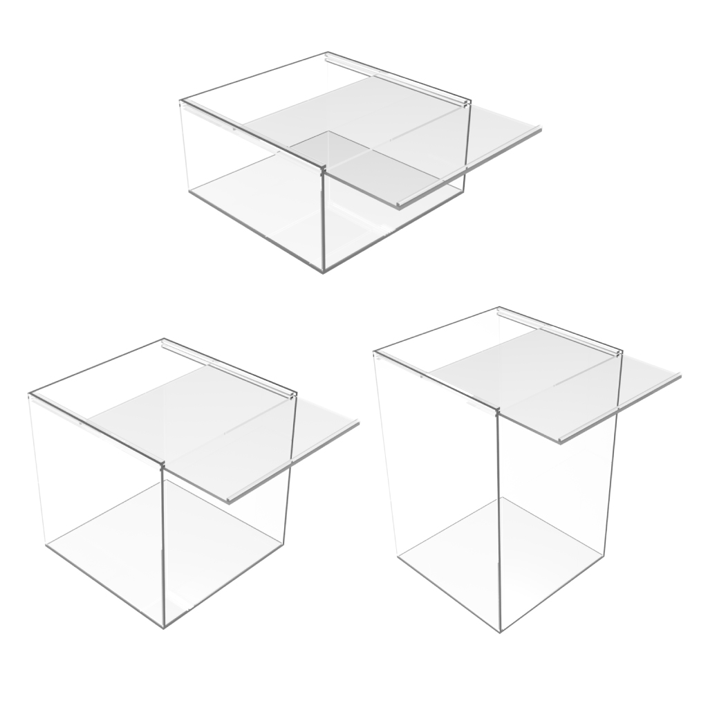 Caja de acrílico cristal con tapa deslizable para mantener tus objetos organizados y al alcance. Su diseño práctico ofrece una solución para almacenar y exhibir productos, que se pueden visualizar con claridad gracias a la tranparencia de su material. Mediante su tapa deslizable se puede acceder fácilmente al contenido sin complicaciones, asegurando que todo se mantenga protegido y ordenado, evitando que se ensucie. Su variendad de medidas disponible le permite ajustarse a al tamaño de los artículos y productos que se deseen almacenar.