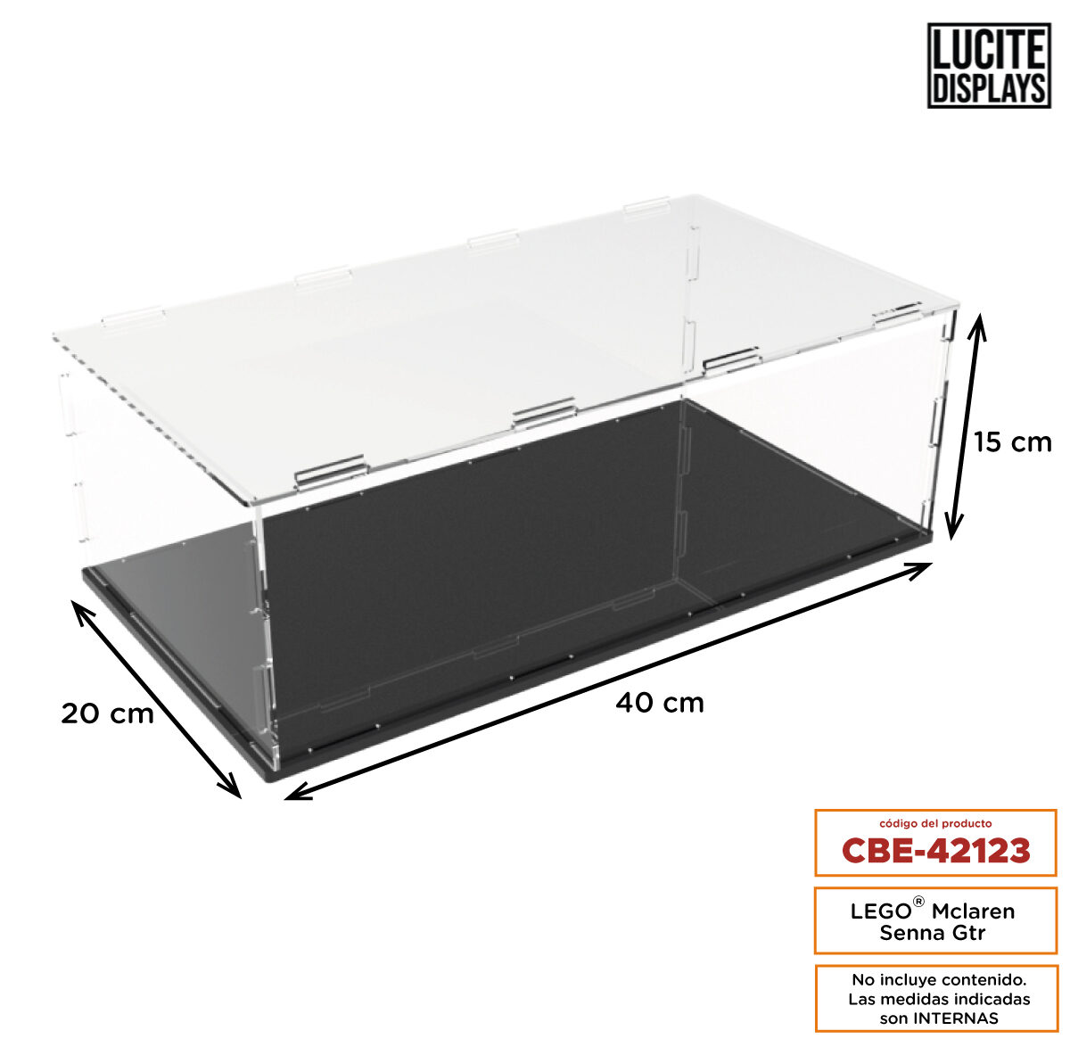 Caja encastrable de acrílico cristal para LEGO® con base de acrílico negro