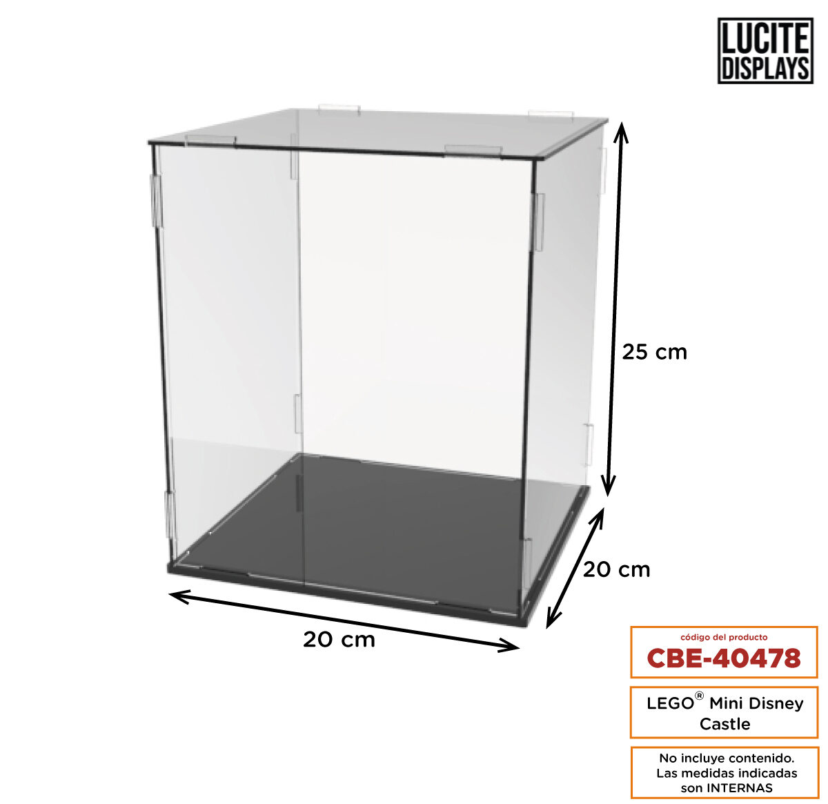Caja encastrable de acrílico para preservar y exhibir tus creaciones LEGO®. Su diseño práctico cuenta con un sistema encastrable que permite un ensamblaje rápido y seguro, brindando una protección óptima a tus modelos. Su estructura transparente garantiza una clara visualización del contenido, pudiendo admirar las construcciones desde todos los ángulos, mientras que la base de acrílico negro genera un contraste que resalta cada pieza, añadiendo un toque sofisticado a tu colección. Disponible en varias medidas para distintos modelos de LEGO®.