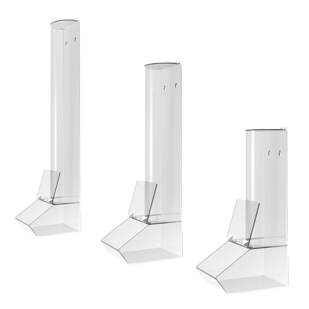 Caramelera tubular con dispenser, ideal para exhibir productos de dietéticas, kioscos o tiendas de golosinas. Fabricada en acrílico cristal, permite una visualización completa del contenido. Incluye sistema de dispenser con tapa para un acceso cómodo de los productos a granel. Disponible con respaldo y base en color transparente, negro o blanco para adaptarse a distintos estilos de tienda.